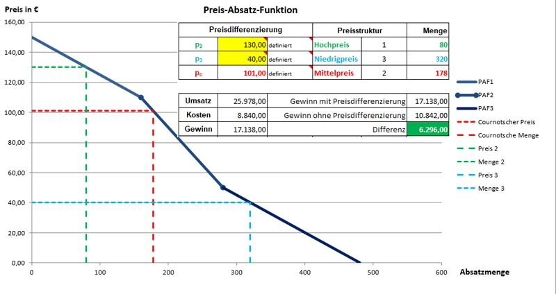 Preisdifferenzierungen auf den Gewinn, graphische Darstellung des Gewinnmaximums