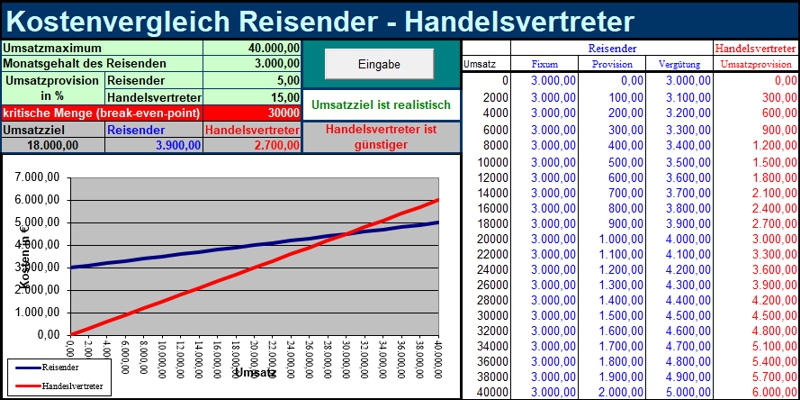 Kostenvergleich zwischen Handelsvertreter und Reisendem, Anwendung der VBA- und