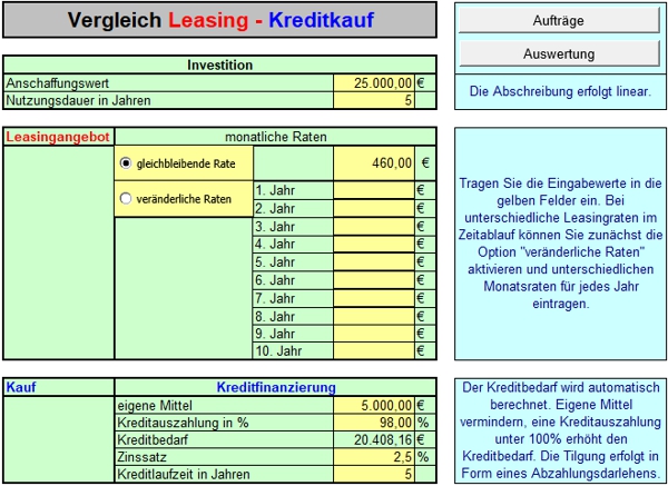 Vergleich zwischen Leasing und Kreditkauf