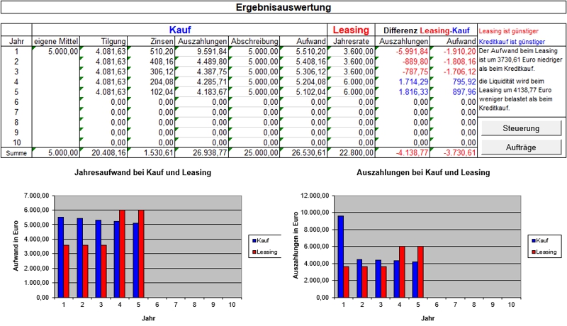 Lerninhalte: Aufwand und Auszahlung bei Kreditkauf und Leasing vergleichen