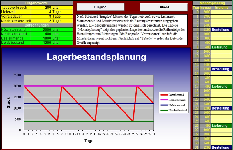 des Meldebestandes, Planung des Lagerbestandes, Anwendung der bedingten