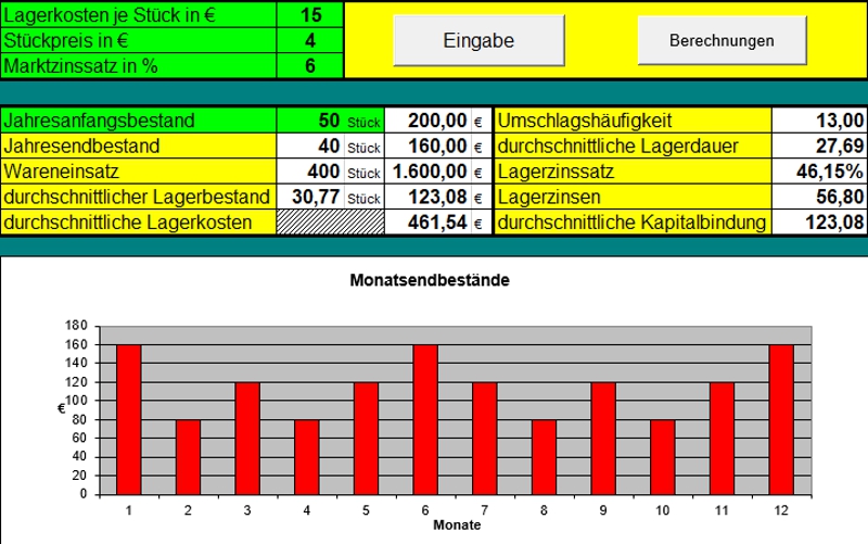 Berechnung von Lagerbeständen,